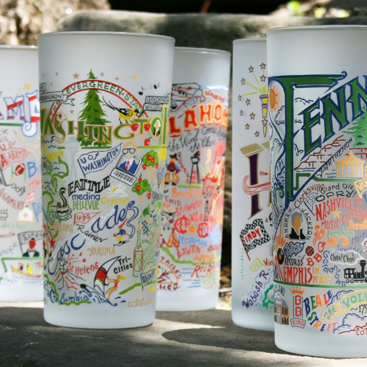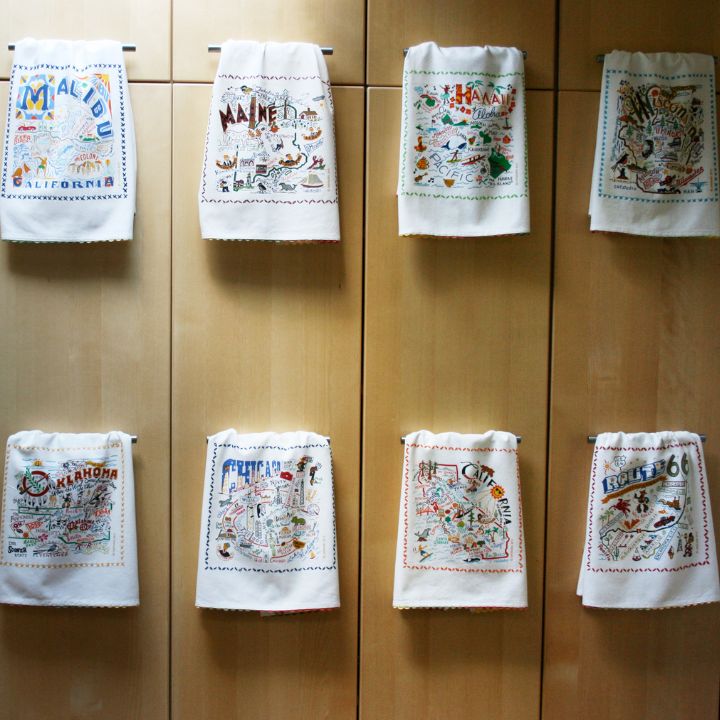 Here at catstudio, we create geography-inspired products including: hand-embroidered accent throw pillows, drinking, barware glasses, dish towels, festive tea towels, woven pouches, and more! All products feature original artwork, craftsmanship, a love of travel and a twist of humor and nostalgia. Our products fit so many decor styles: cottage, boho, farmhouse, coastal or retro and create happiness in every room of the house. The perfect gift or classy souvenir.